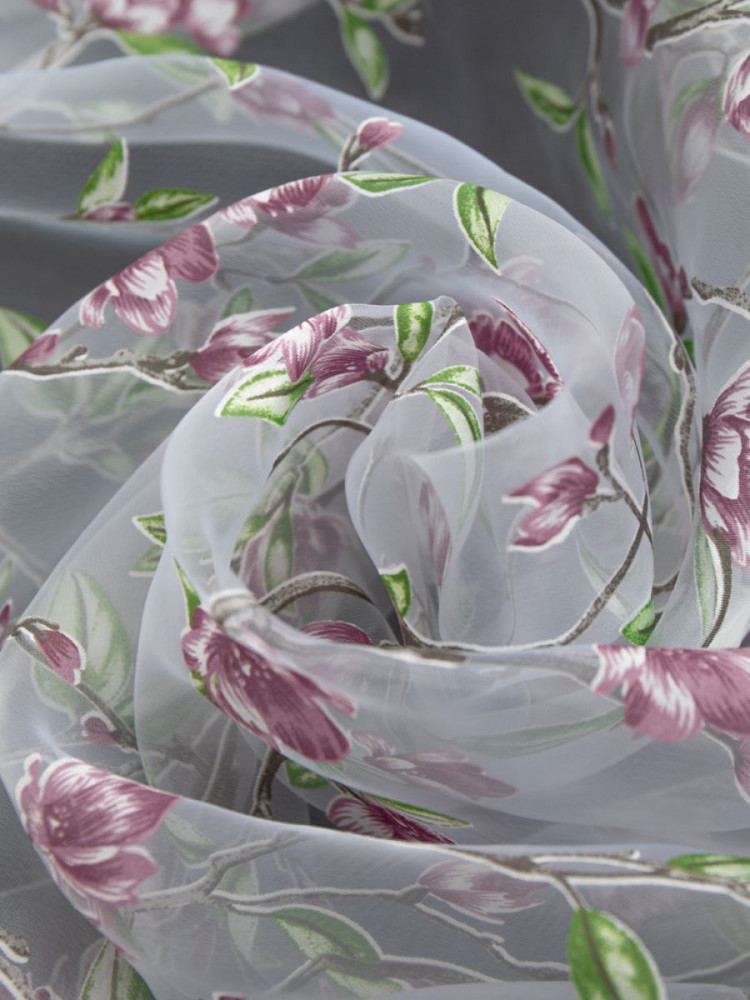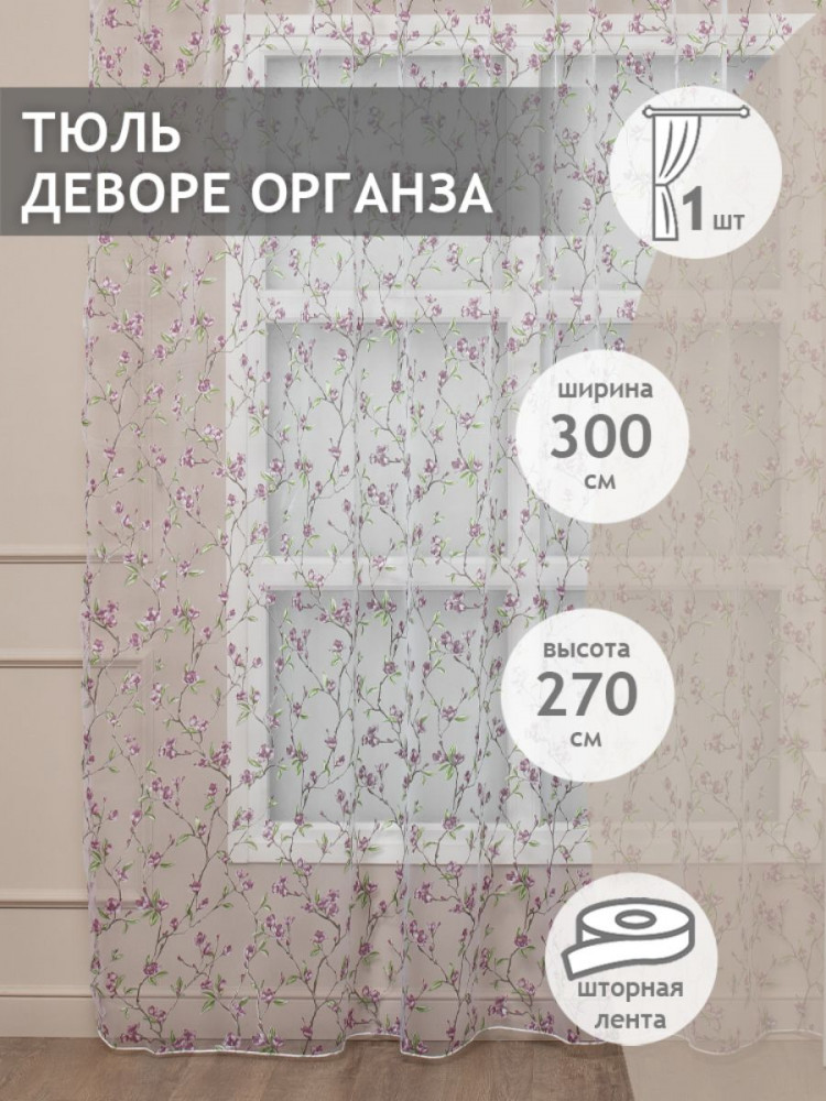 Нежнейший тюль деворе органза производится из особенной прозрачной ткани с воздушным рисунком, фактурой напоминающий рисованный маслом или акварелью сюжет или яркий витраж. Такую текстуру ткани получают методом химического травления: материал деворе получается прозрачным, просвечивающим и матовым, воздушным и очень элегантно-загадочным. Данный тюль не требует особого ухода и долгое время сохраняет свои эстетические качества и привлекательный внешний вид.