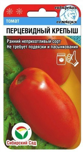 Ранний, очень неприхотливый урожайный сорт сибирских селекционеров для открытого грунта. От всходов до начала созревания плодов 105-110 дней. Растение компактное, штамбовое, высотой всего 30-40 см, не требует пасынкования и подвязки. Плоды перцевидной формы, малиновой окраски, достаточно крупные- до 150 грамм, очень вкусные как в свежем, так и в консервированном виде. Сорт устойчив к ВТМ, приспособлен к суровым климатическим условиям Западной Сибири. Урожайность до 4 кг с 1 кв. м.