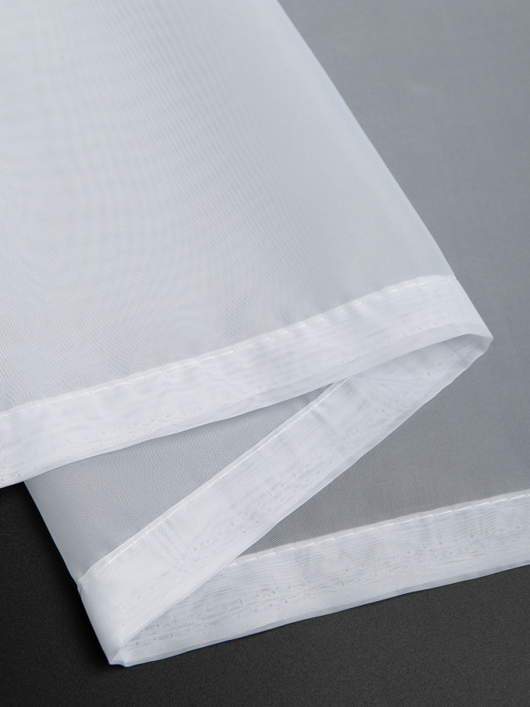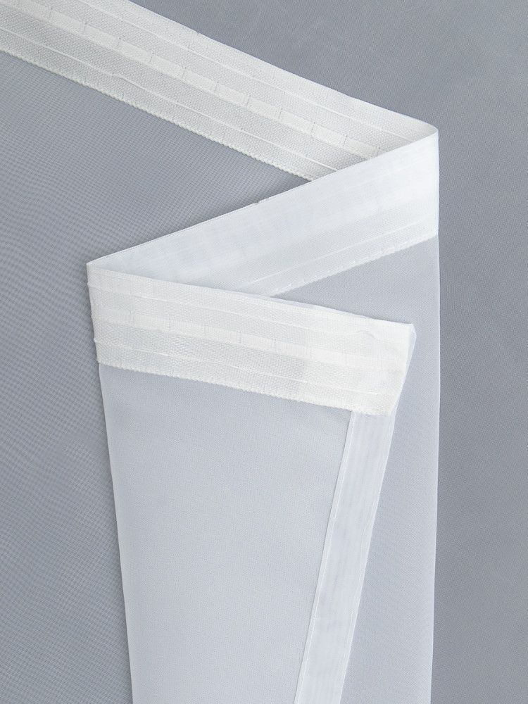 Тюль хорошего качества, но лента действительно пришита неверно. Но мне всё равно надо было утрачивать, поэтому это не имело для меня значения.