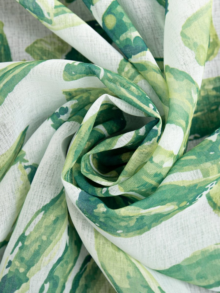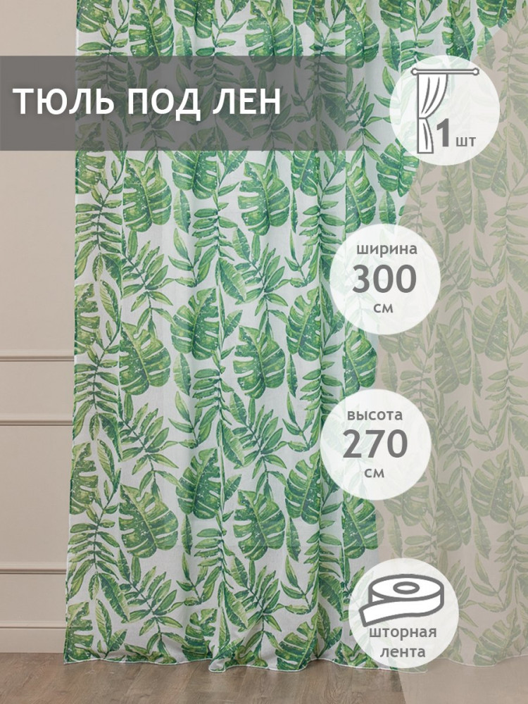 Интересная штора.Конечно же это точно не лен , а полиэстр.Но ткань отлично гладится.Очень легкая и воздушная ,с красивым принтом.Хорошо смотрится на окне.Освежила кухню.Прям классные летние шторы и главное ширина 3 м. Пришли в пакетике на замке.Рекомендую