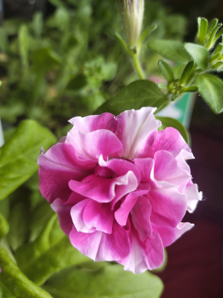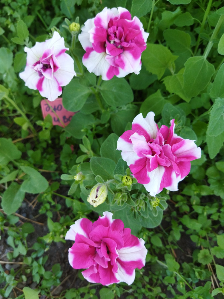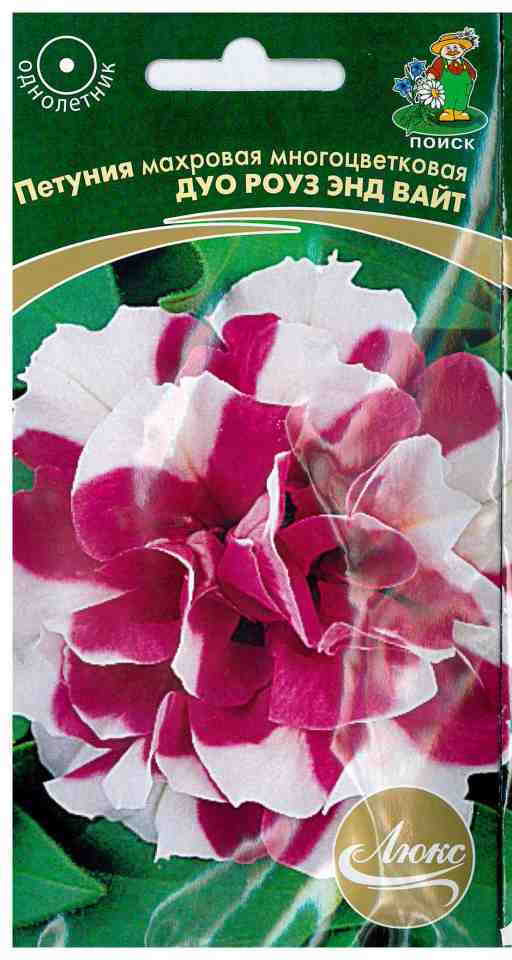 Многочисленные махровые шарики цветов на раскидистых кустиках. Растение высотой 25-35 см и диаметром около 30 см. Цветы махровые двуцветные — с белыми и розовыми лепестками. Обильно цветет с июня по сентябрь.