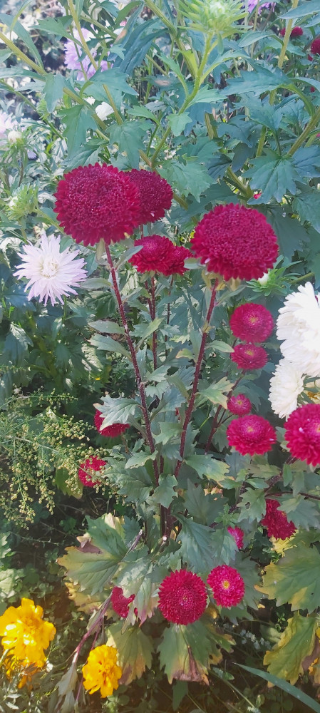 Всходит неплохо, приживается хорошо. По размеру я думала сами цветы будут чуть крупнее. Могут расти и в полутени, но тогда и цветы мелче, и вырастают невысокие. По расцветке астра скорее бордовая, а не красная.