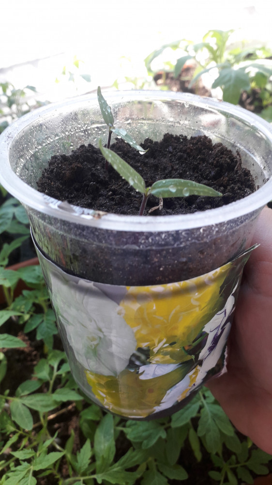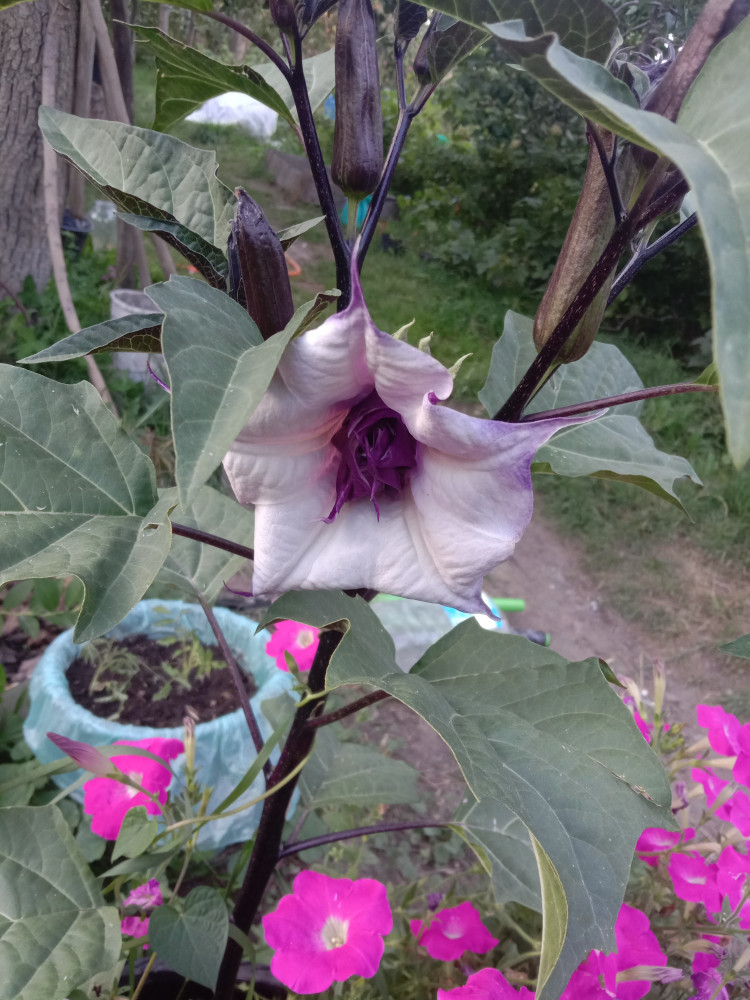 Из трех семечек взошло два. Цветы не видать, находятся где-то внутри куста. Цветок держится день. Куст высотой 70 см. Не понравился