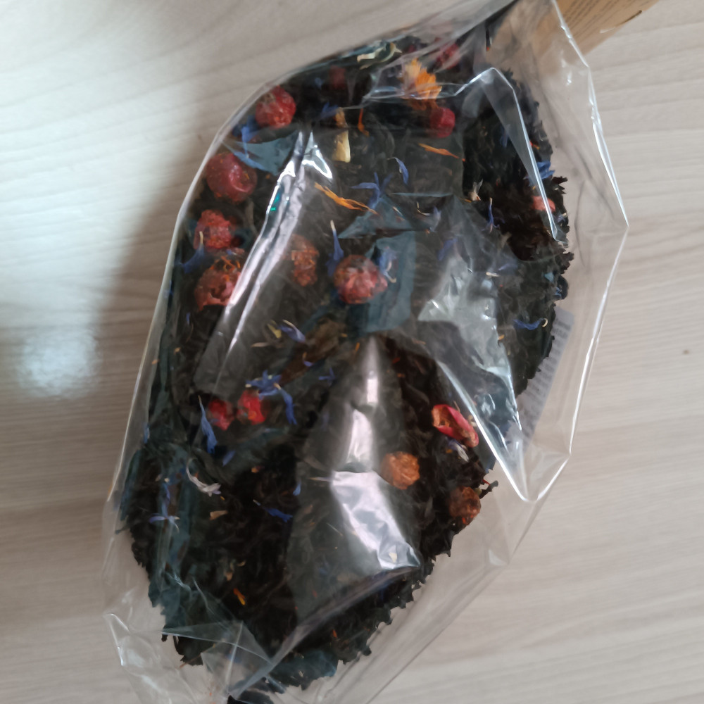 Чай понравился. Чай со сладкими ароматом летних лугов и садов. Упакован в прозрачный пакет, по мне так это хорошо, сразу видно, как выглядит. Чай не пылеобразный в нем красивые, не слишком крупные,но и не мелкие листики чая, лепестки цветов и сушёная красная смородина. В составе чая лепестки софлора, это растение не дорогой заменитель шафрана. Добавляют не только в чай, но и выпечку. Софлор обладают мочегонным, антисептическим и вяжущим действиями. Отваром из цветков данного растения лечат язвенную болезнь желудка, гастриты. Придает чаю горьковатый, пикантный вкус и красивый красноватый оттенок. Так же в чай добавлены лепестки цветка василек, который помогает вывести лишнюю жидкость, что полезно при отёках. Добавление цветка в чаи, настои улучшает пищеварение, нормализует аппетит. В общем этот чай не только вкусный, но и полезный. Заваривается и настаивается около семи минут, что бы полностью раскрыть свой вкус, терпкий, слегка сладковатый. Смородина даёт кислинку. Чай и визуально красивый, что в сухом виде, что в заваренном. Тем кто любит чаи с добавками натуральными, не химозными, однозначно рекомендую. Честно говоря купила этот чай, из-за названия, у меня дочь Ольга. Влюбилась в этот чай, внесла в список того, что буду покупать в дальнейшем.