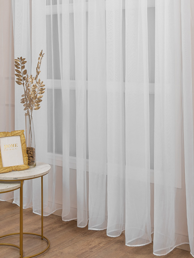 Тюль понравилась очень. Не воздушная легкая, а хорошо текучая ткань, которая красиво ложится фалдами и ровная белоснежная.