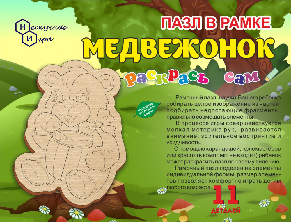 Нескучные игры Пазл в рамке. Раскрась сам «Медвежонок»+56