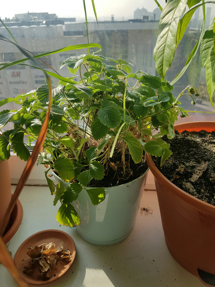 Отличная оконная клубника. Посадили в апреле. В августе появились первые ягодки. Сейчас ноябрь, клубничка на фото.