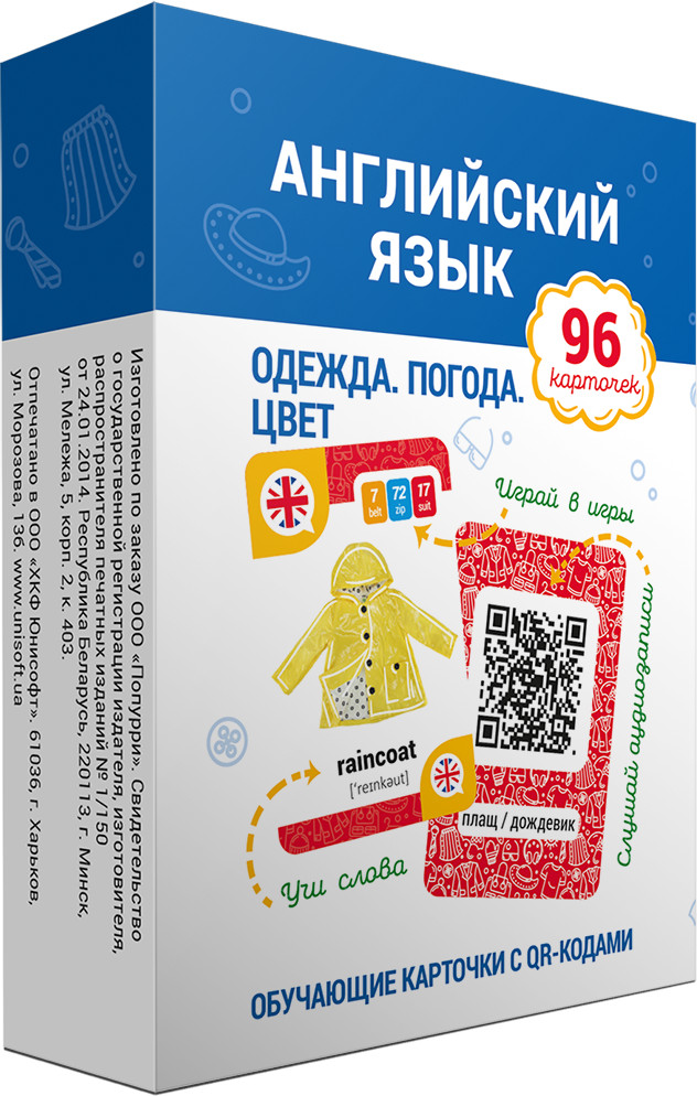 Английский язык. Одежда. Погода. Цвет. Обучающие карточки с QR-кодами-35% +120