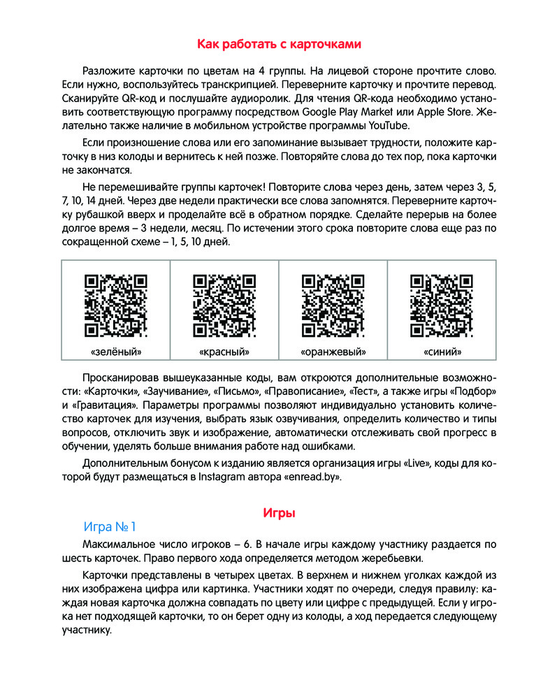 💳 Оплатить за товар можно при получении 🇰🇿 Есть бесплатная доставка по Казахстану от 1 дня 🎁 Копите бонусы с каждой покупки Серия: Учебная. Английский язык Комплект карточек по теме «Одежда. Погода. Цвет» для начинающих изучать английский язык. В набор входит вкладыш с инструкцией и играми, 96 карточек с иллюстрациями, словами на английском языке, транскрипцией и переводом. На каждой карточке есть QR-код, с помощью которого можно послушать, как правильно звучит слово. |