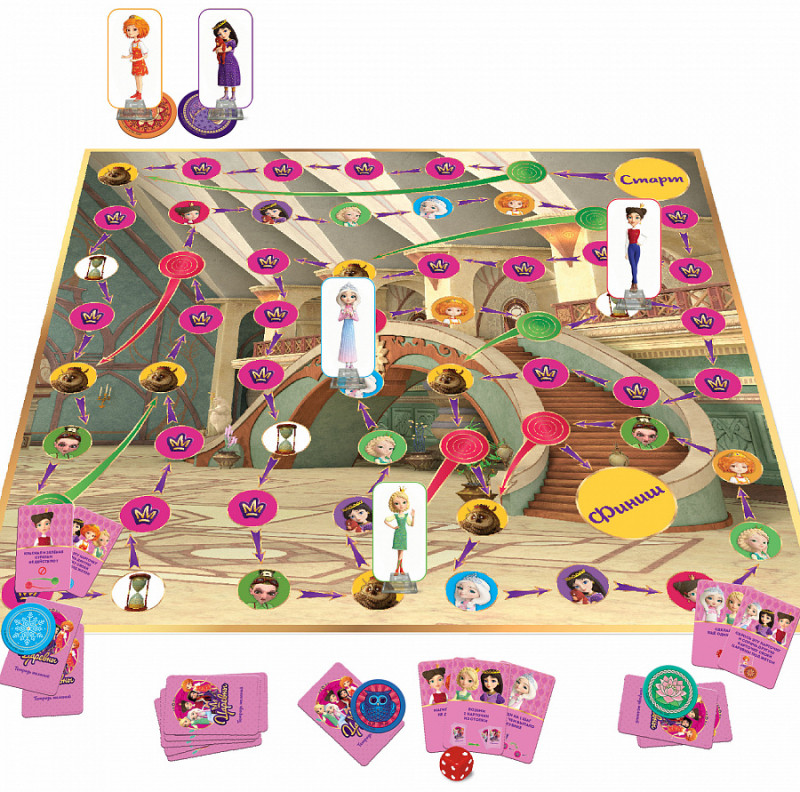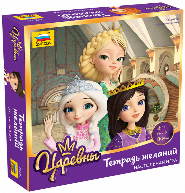В «Тетради желаний» — царевны ищут и собирают разлетевшиеся страницы из таинственного переплёта, чтобы получить возможность выполнить самые заветные желания. Конечно же, не обойдётся без козней Бабы Яги, которая способна сбить с пути самую целеустремлённую царевну! Бросайте кубик, двигайте свою фишку, смело меняйтесь карточками найденных страниц Тетради желаний и применяйте их свойства. Для победы надо не только прийти к финишу раньше всех, но и собрать как можно больше карточек с изображением своей царевны.