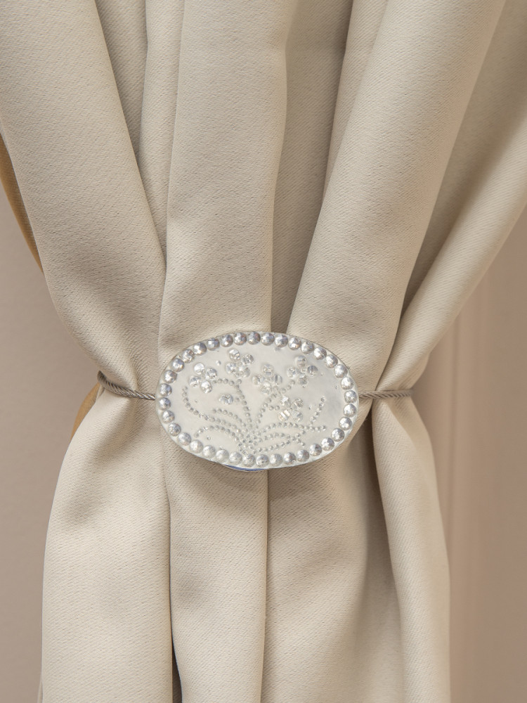 Подхват красивый, интересный. Магниты держат крепко. Поставила 4 звезды, потому что чуть позже заметила, подхват на одну левую сторону. Если крепить его на правую сторону, то он получается вверх ногами.