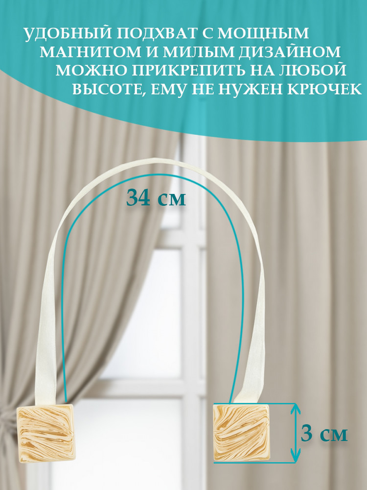 Прекрасные подхваты, по цвету подошли идеально. Магнитики крепкие, сами подхваты не броские, к моим шторам подошли идеально.