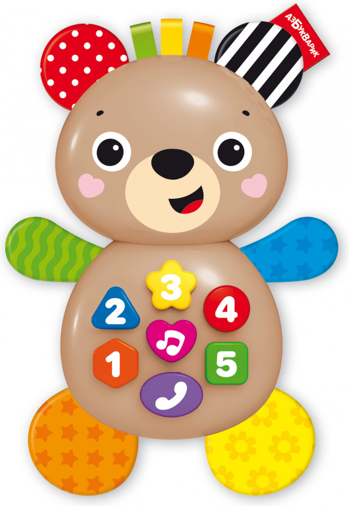 Азбукварик Игрушка «Мишка»В данный момент этот товар отсутствует в продаже. Возможно, у нас найдется аналогичный или похожий товар здесь. Серия: Люленьки Забавный мишка станет для малыша не просто любимой игрушкой, а хорошим другом! Нажимая на кнопочки, ребенок сможет послушать 30 звуков, фразочек, песенок, выучить цифры, формы и цвета, поиграть в телефончик. Огоньки на кнопочках мигают под музыку и создают ощущение праздника. А еще у мишки мягкие лапки и шуршащие ушки, которые так приятно трогать! |