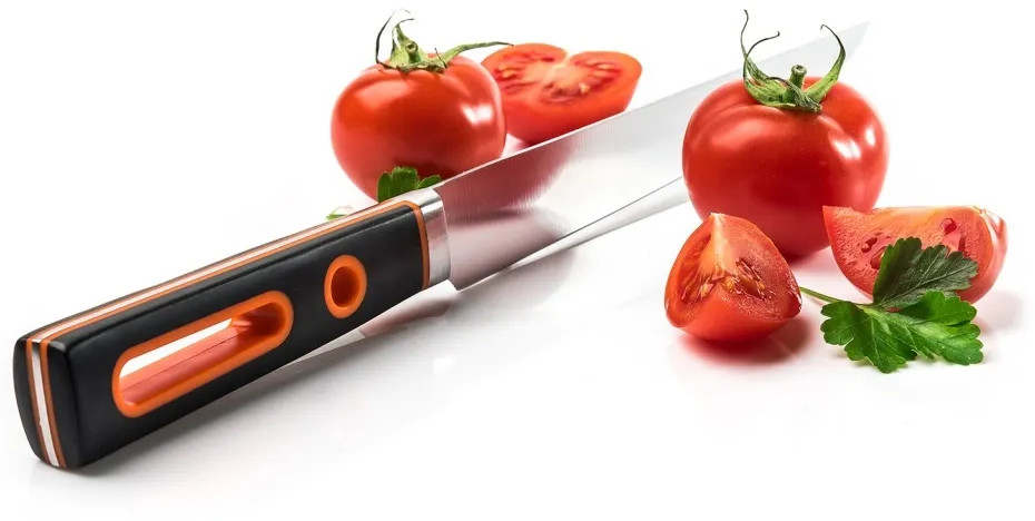 TalleR Нож для нарезки «Ведж»В данный момент этот товар отсутствует в продаже. Возможно, у нас найдется аналогичный или похожий товар здесь. Серия: Ведж Нож является универсальным кухонным атрибутом и может использоваться для мелкой нарезки овощей, фруктов и зелени. В рукояти имеется отверстие, позволяющее подвешивать нож. |