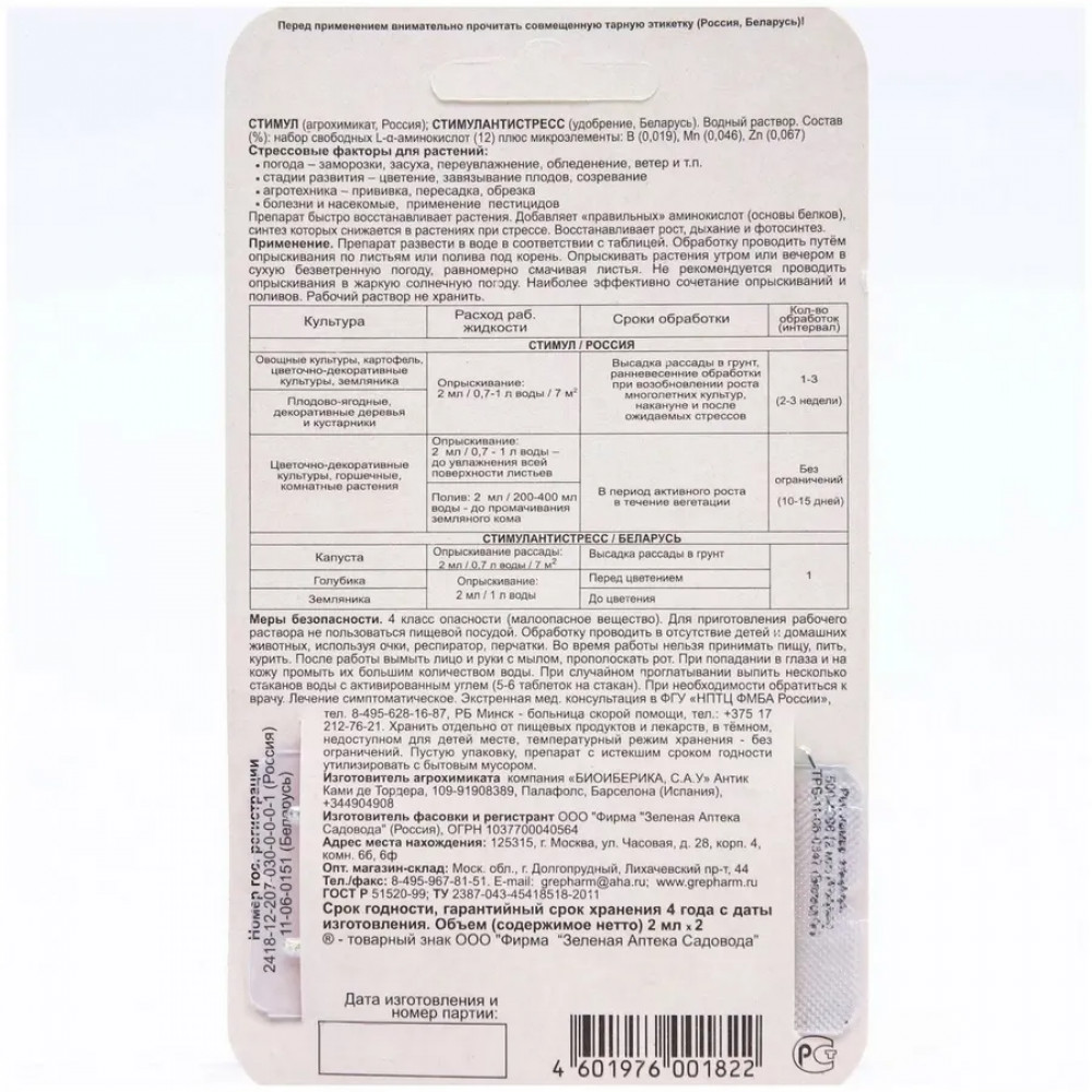 Зеленая аптека садовода Средство для возрождения растений «Стимул»+7 восстановление растений быстрый эффект корнеобразование удобная расфасовка простота применения