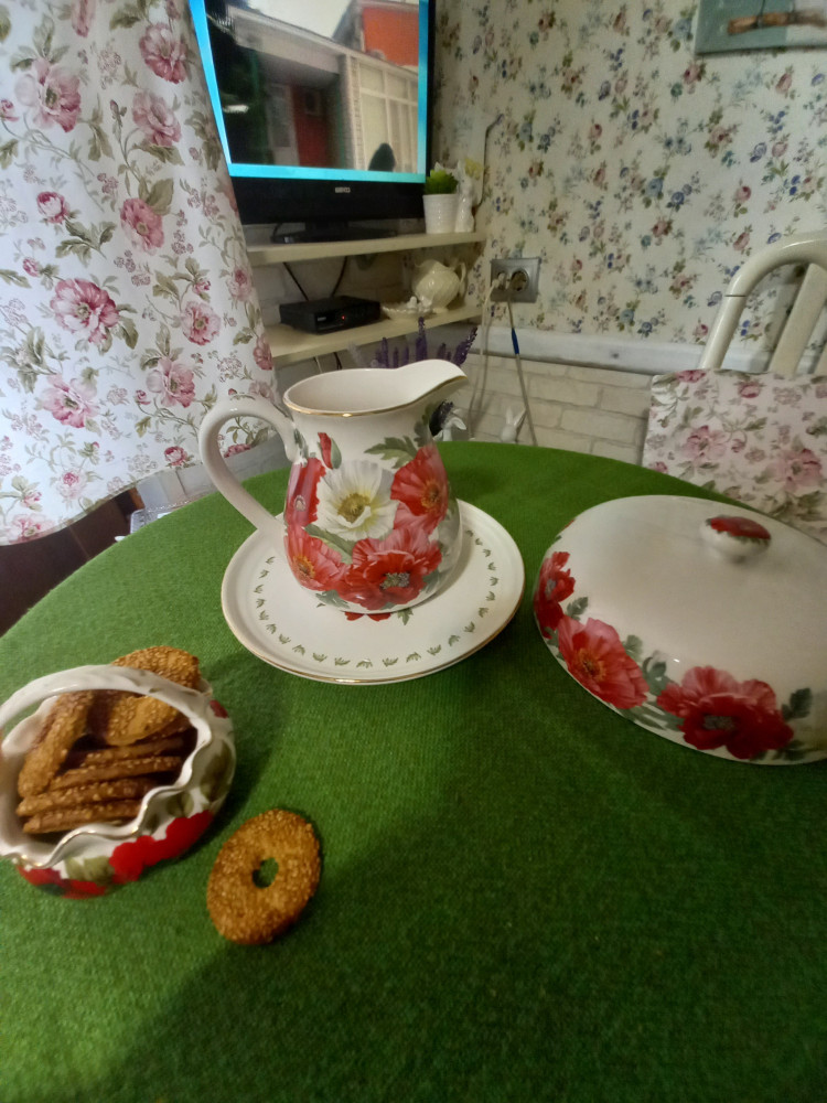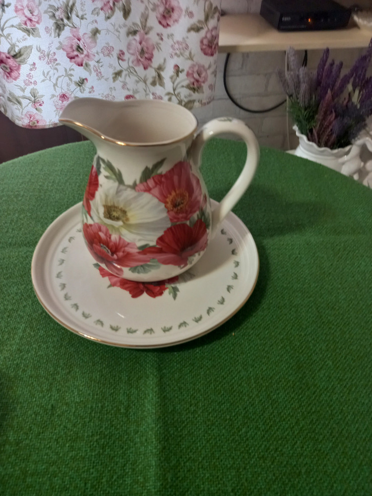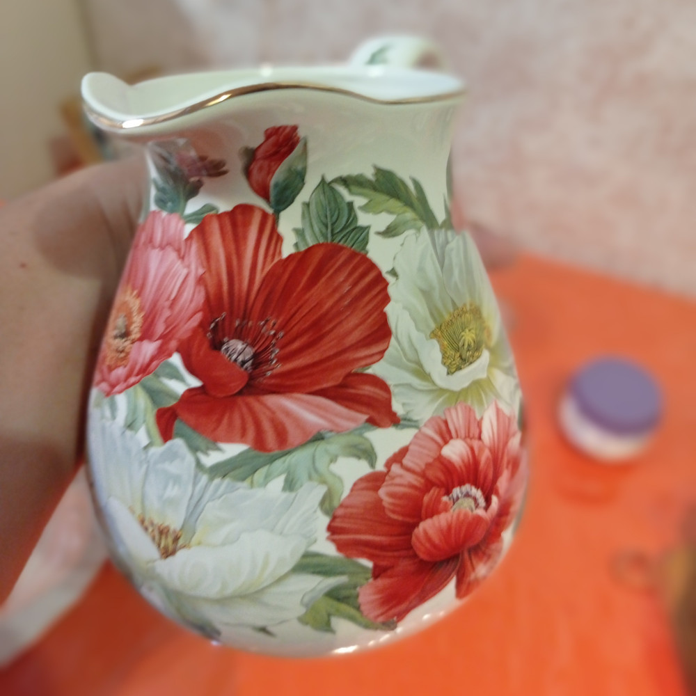 Кувшин классный, аккуратный, элегантный, очень яркий с крупными цветами, лёгкий, с широким горлышком, красивый и объём отличный. Просто замечательная посуда из именно этой серии "Маки"
