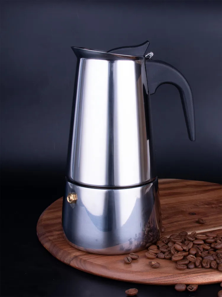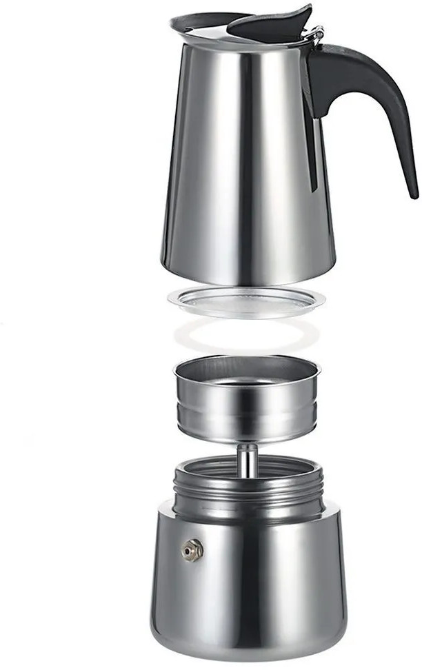 Кофеварка выполнена из высококачественной стали 18/10. Ёмкость для воды и фильтр выполнены из безникелевой стали 18/0. Ручка выполнена из нейлона с нескользящим покрытием. Латунный клапан предназначен для сброса избыточного давления. Подходит для индукционных и других видов плит. Рекомендуется ручная мойка.