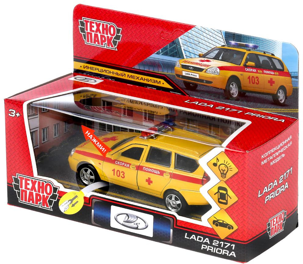 Коллекционная металлическая модель «Lada 2171 Priora. Реанимация» ТМ «Технопарк» прекрасный подарок для маленького автолюбителя. Металлическая машинка, выполненная с учётом всех особенностей, прототипа понравится вашему ребёнку. Благодаря открывающимся дверям и багажнику, которые делают машинку максимально похожей на настоящую, всегда можно заглянуть к ней внутрь, чтобы убедиться — каждая деталь отлично проработана. Реалистичный дизайн игрушки позволит с головой погрузиться в игру, придумывая новые интересные сюжеты. Кроме того, эта игрушка познакомит малыша с видами спецтранспорта и марками автомобилей. |
