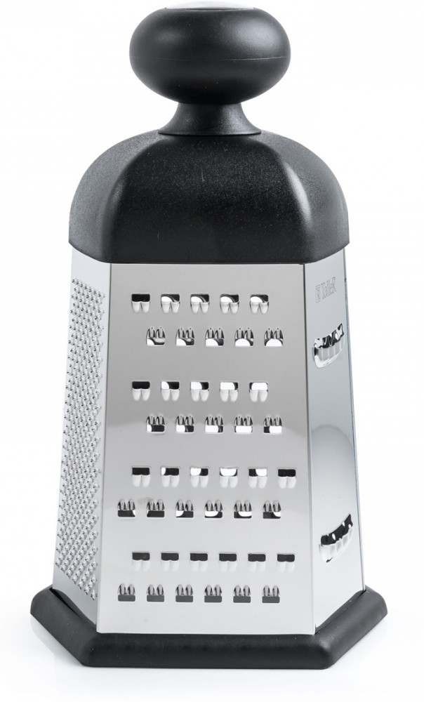 Замечательно универсальная терка с лезвием из нержавеющей стали для натирания сыра, овощей и многого другого. Также для равномерной нарезки огурцов, кабачков. У терки 6 видов лезвий — крупная терка, средняя терка, мелкая терка, шинковка,фигурная шинковка, шреддер.
