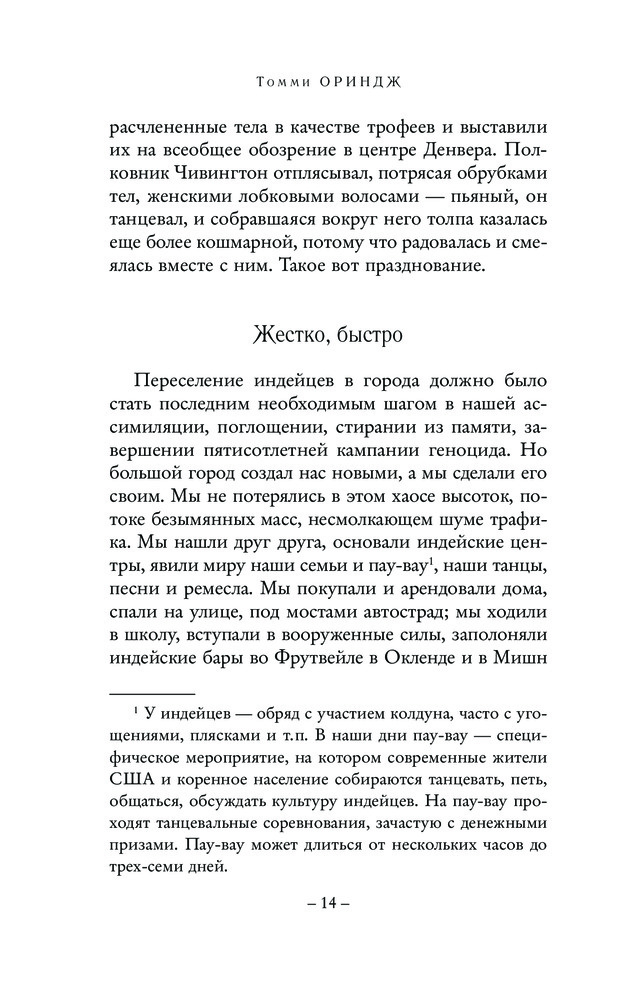 История двенадцати индейцев. История тех, кто так отличается от остальных. Автор данной книги Томми Ориндж, показывает тех самых индейцев совсем с другой стороны, как тех, кто родился в меньшинстве и до сих пор чувствует это на себе. Для меня книга была совсем далёкой, от тех что я привыкла читать. Но обратив на неё внимание, я решила её прочесть и не пожалела. Я думаю, она будет интересна тем, кто захочет больше узнать о коренных жителях Америки, посмотреть на них с другой стороны. Или для тех, кто так же как и они чувствовали всегда себя не в своей колеи, из-за цвета кожи, национальности.