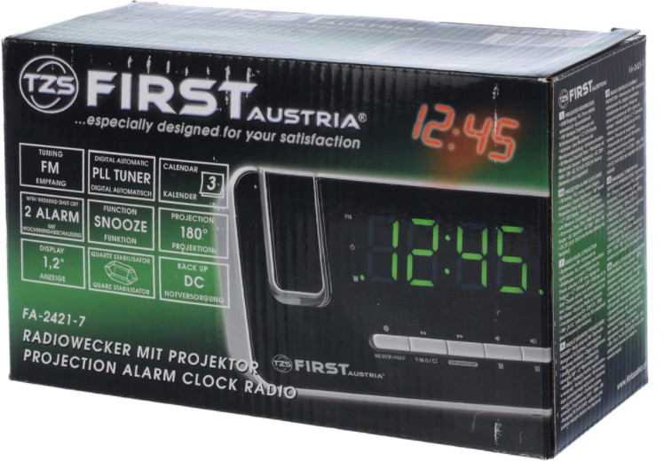 First Austria Радиочасы-будильник First FA-2421-7В данный момент этот товар отсутствует в продаже. Возможно, у нас найдется аналогичный или похожий товар здесь. Часы-радиобудильник First FA-2421-7 В данном устройстве предусмотрена функция повторного сигнала, активировав которую у вас появится возможность поспать на несколько минут дольше обычного. Модель First FA-2421-7 стала обладательницей цифрового экрана и тактовых кнопок, которые облегчат вам процесс выбора желаемых параметров ее работы. С функцией подсветки у вас появится возможность узнать всю необходимую информацию или поставить будильник даже при отсутствии освещения в комнате. Особенность устройства заключается в предусмотренном в нем тюнере, который позволит вам слушать любимые радиостанции. |