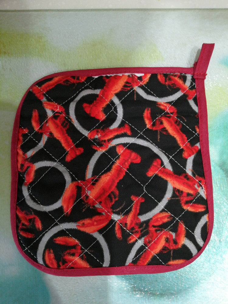 Прихватка хорошая. Цвет на Флипе казался серым, но прихватка чёрного цвета, это даже лучше, раки- яркого оранжево-красного цвета. Смотрится красиво.