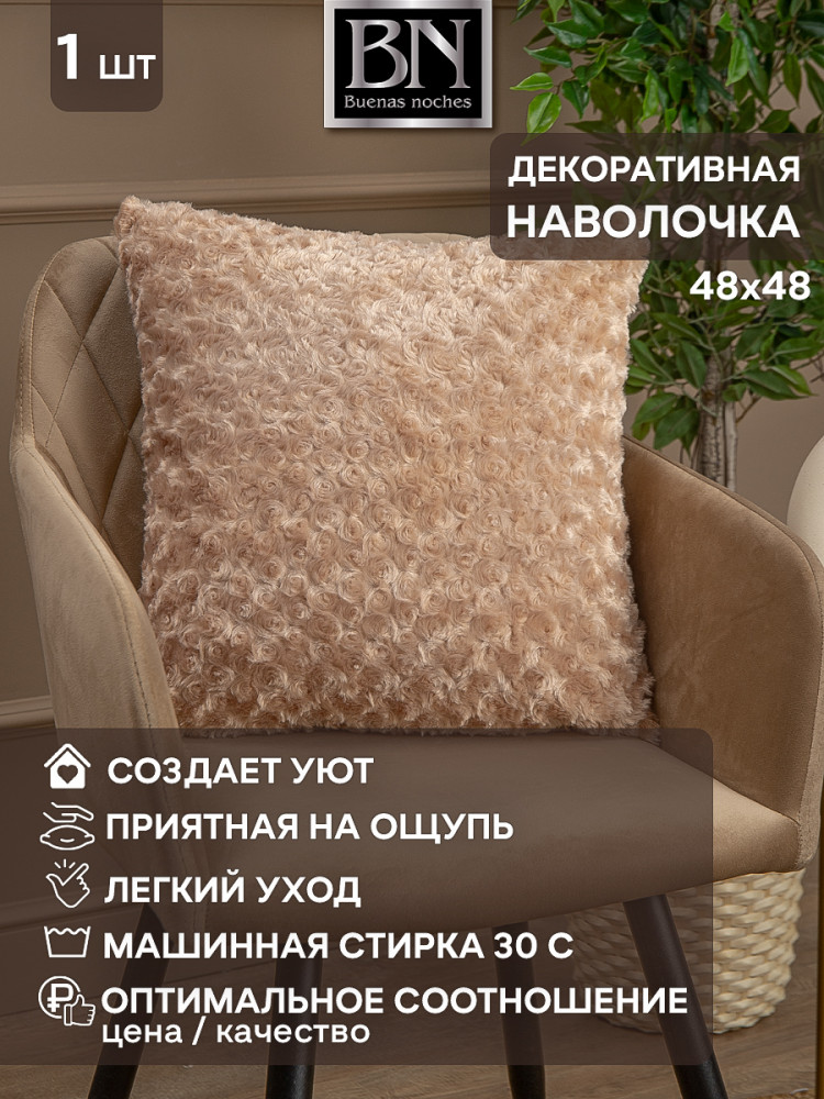 Искусственный мех очень практичен: в отличие от меха натурального, такую наволочку можно стирать, а после стирки достаточно встряхнуть и расчесать, чтобы вернуть ей первоначальный вид. Торговая марка «Buenas Noches» — это элегантность, стиль и качество!