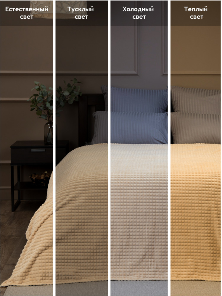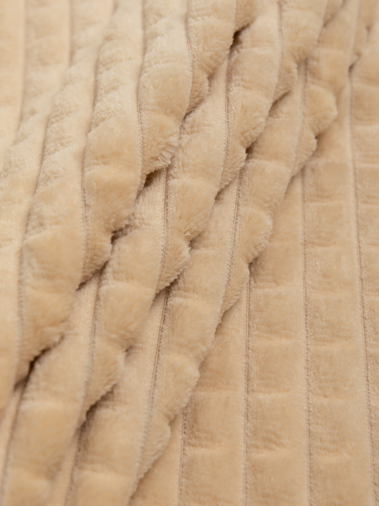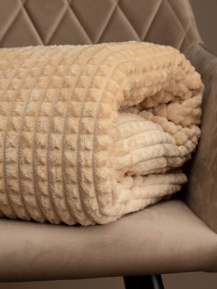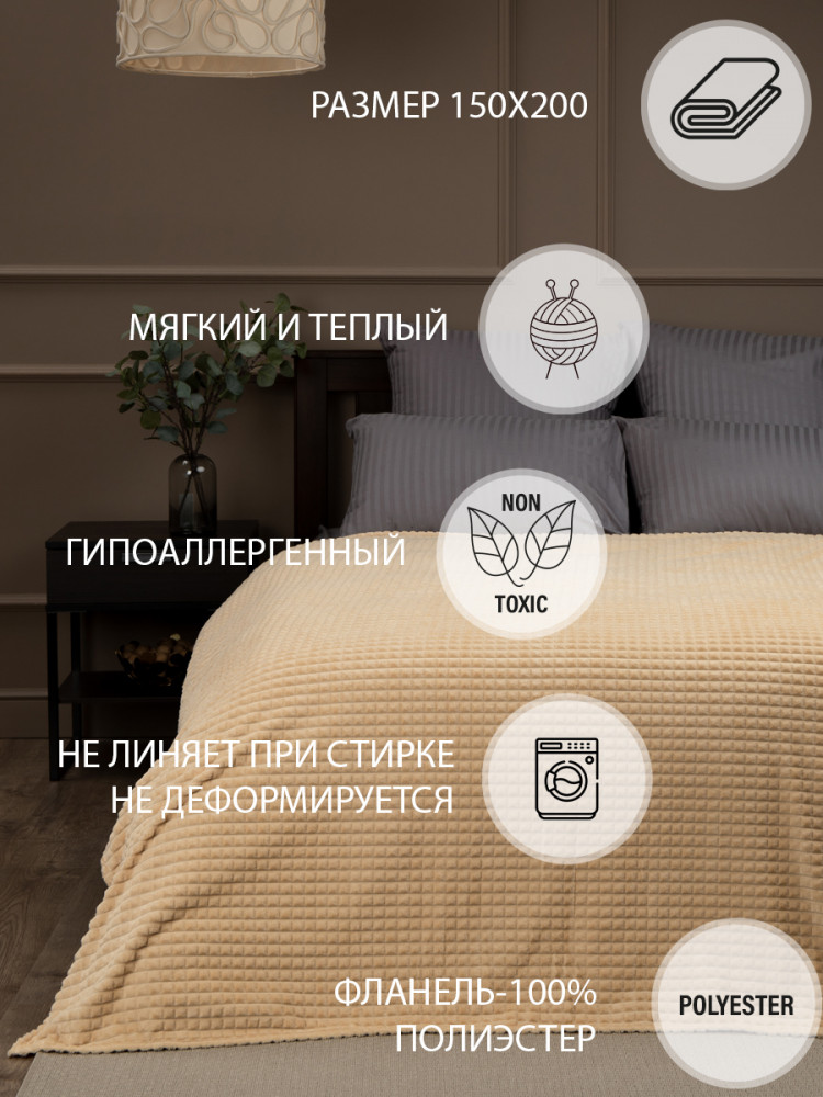 Заказала 2 таких пледа. Сначала себе - молочного цвета, затем взяла на подарок светло коричневый. Смотрится здорово на кровати, на ощупь очень мягкий. При стирке в машинке не садится и не линяет.