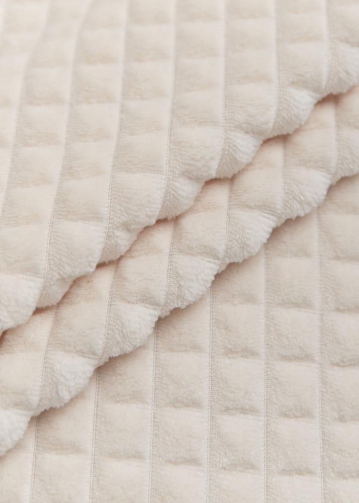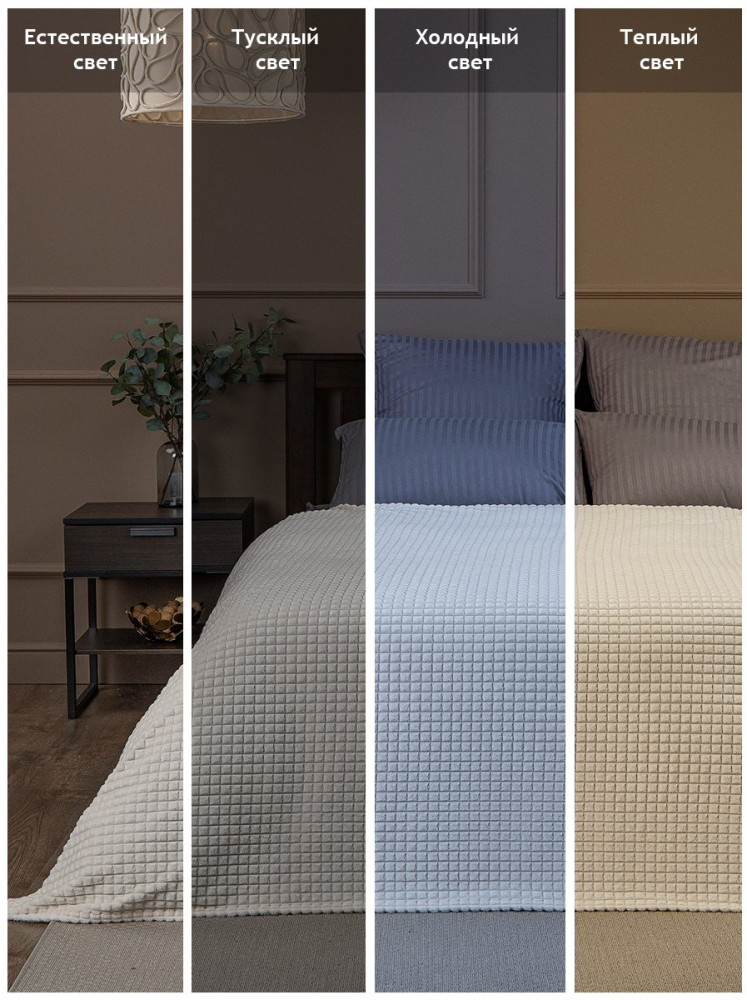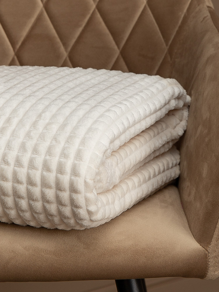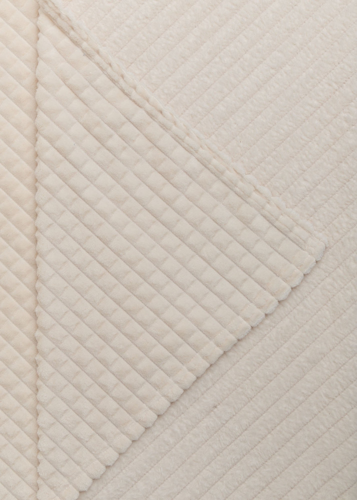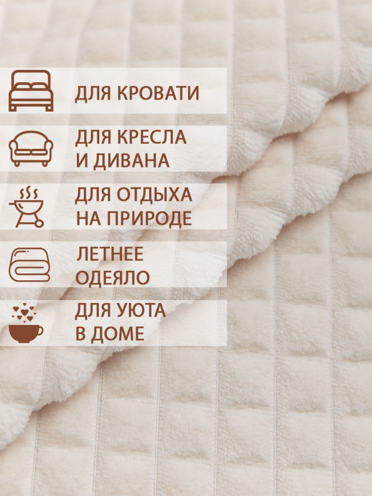 Плед хорошего качества. Цвет брала молочный, соответствует фото. Очень легкий, шелковистый, приятный к телу. Рисунок двусторонний, с одной стороны полосы, с другой квадратики.