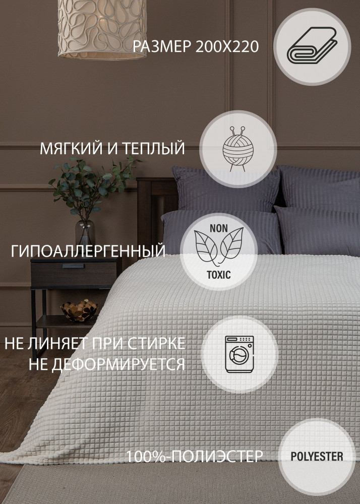 Отлично подошел плед. Мягкий, приятно ложиться. Не линяет. Очень легкий