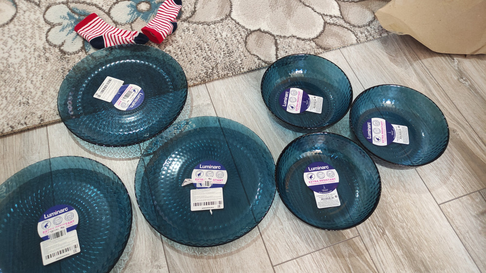 Хорошая серия. Я купила суровые тарелки, салатики малые и салатник большой. Очень хорошие. Единственный момент - на фото цвет более голубой (на всей серии и на фото некоторых отзывов), но мне пришёл набор гораздо более тёмный. Не знаю, что лучше