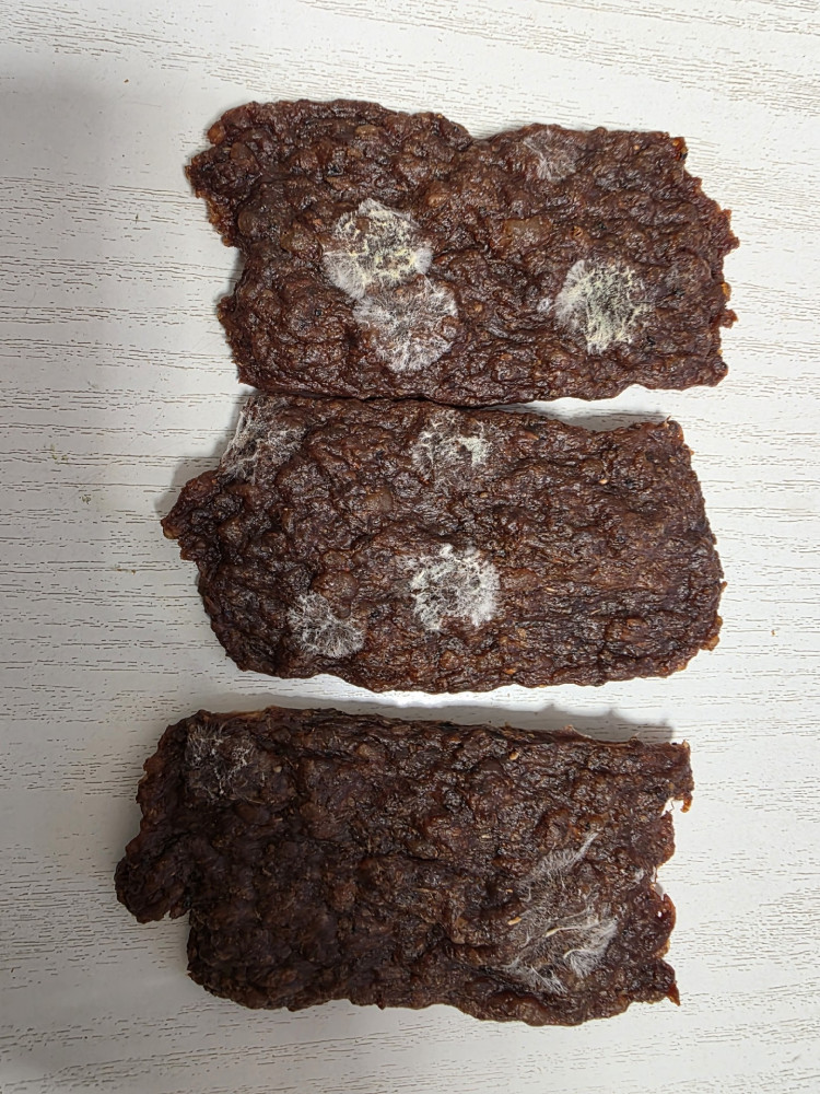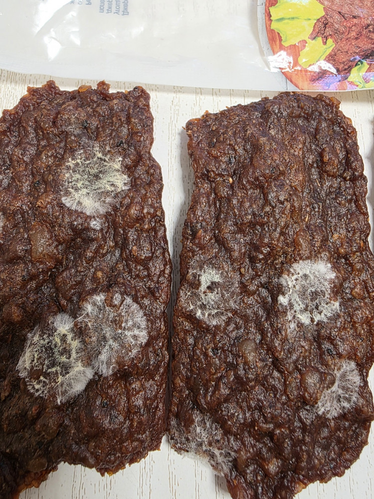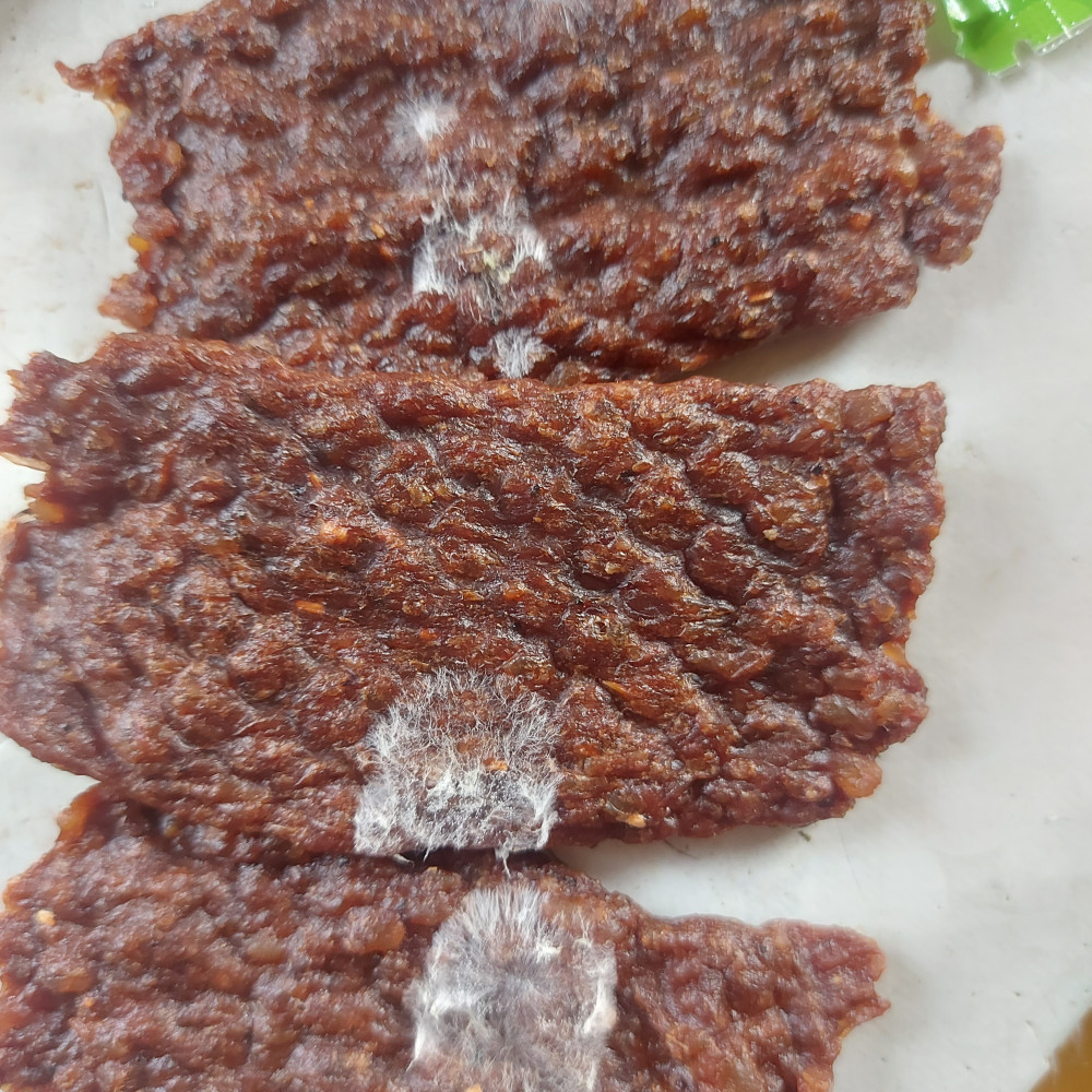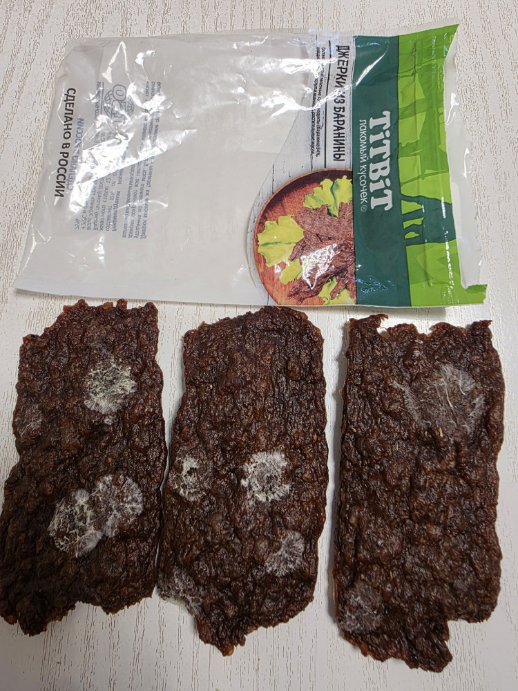 неплохие джерки, но в одной из пачек, причём ещё не вскрытой на мясеных кусочках, на всех трёх повилась плесень, в остальных упаковках такого нет