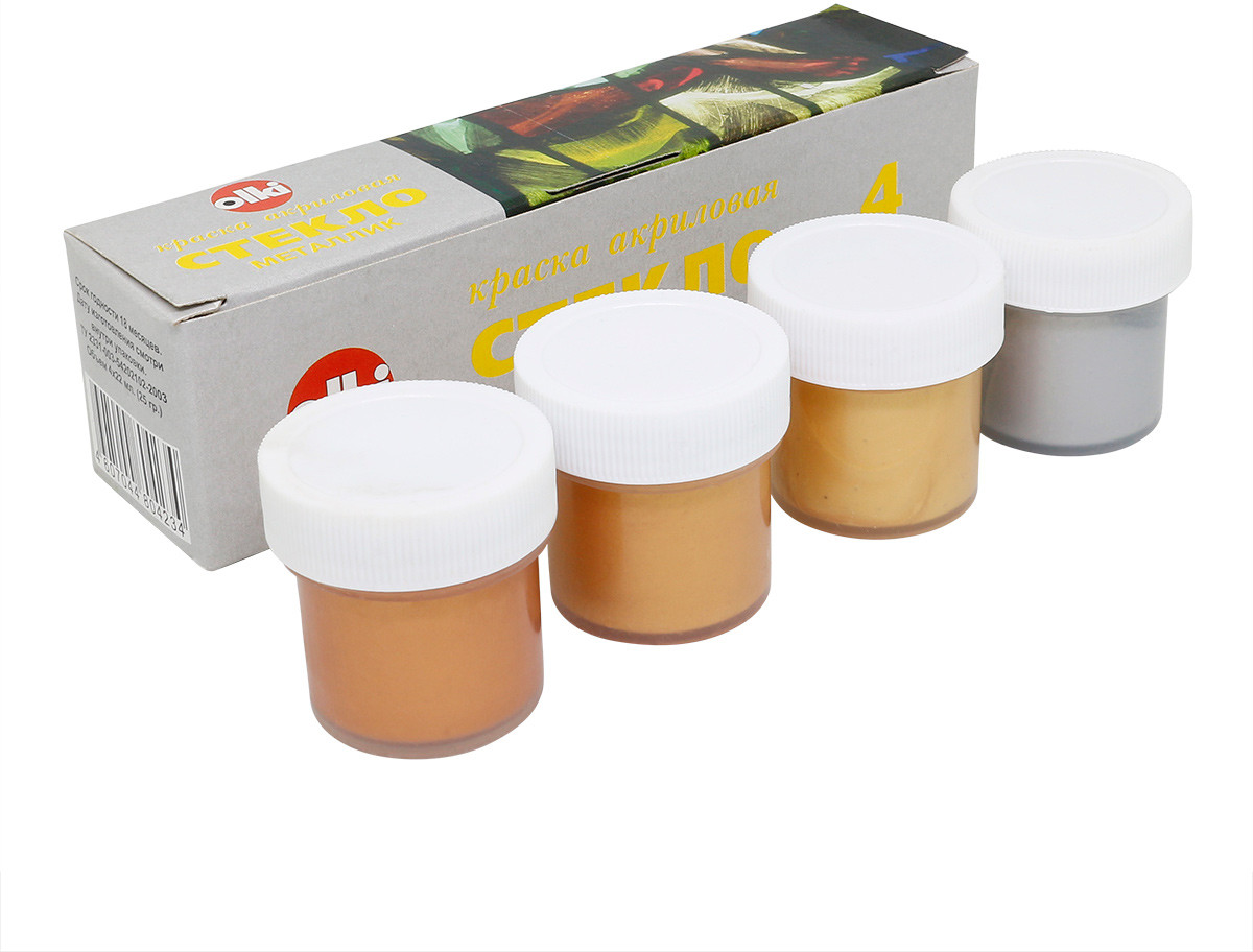 Olki Набор акриловых красок по стеклу «Металлик»В данный момент этот товар отсутствует в продаже. Возможно, у нас найдется аналогичный или похожий товар здесь. Кроющие краски с металлическим блеском. Подходят для росписи по стеклу, фарфору, керамике, камню, металлу. На водной основе, не токсичны, для закрепления цвета не потребуется обжиг. Устойчивы к неабразивным моющим средствам. |