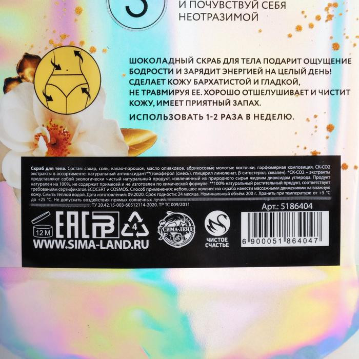Чистое счастье Скраб для тела с шоколадным ароматом «С 8 Марта»В данный момент этот товар отсутствует в продаже. Возможно, у нас найдется аналогичный или похожий товар здесь. Серия: 8 Марта Шоколадный скраб для тела подарит ощущение бодрости и зарядит энергией на целый день! Сделает кожу бархатистой и гладкой, не травмируя ее. Хорошо отшелушивает и чистит кожу, имеет приятный запах. Использовать 1-2 раза в неделю. |