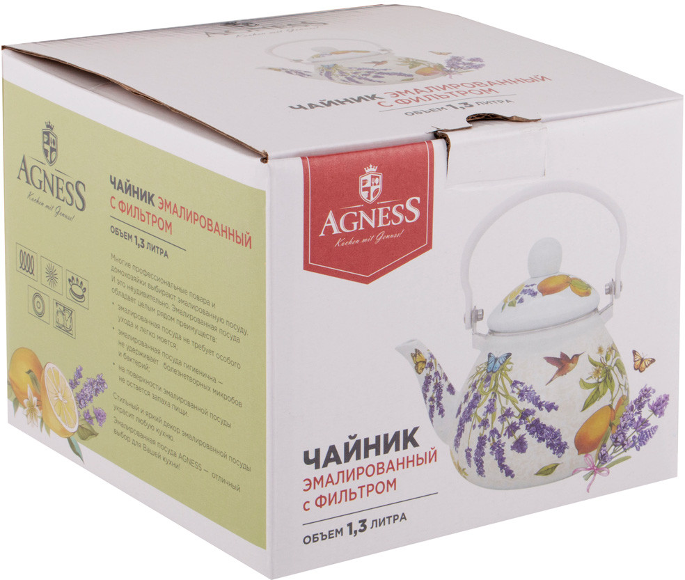 Agness Чайник эмалированный с фильтром-40% +71 красивый большое ситечко неплотная крышка