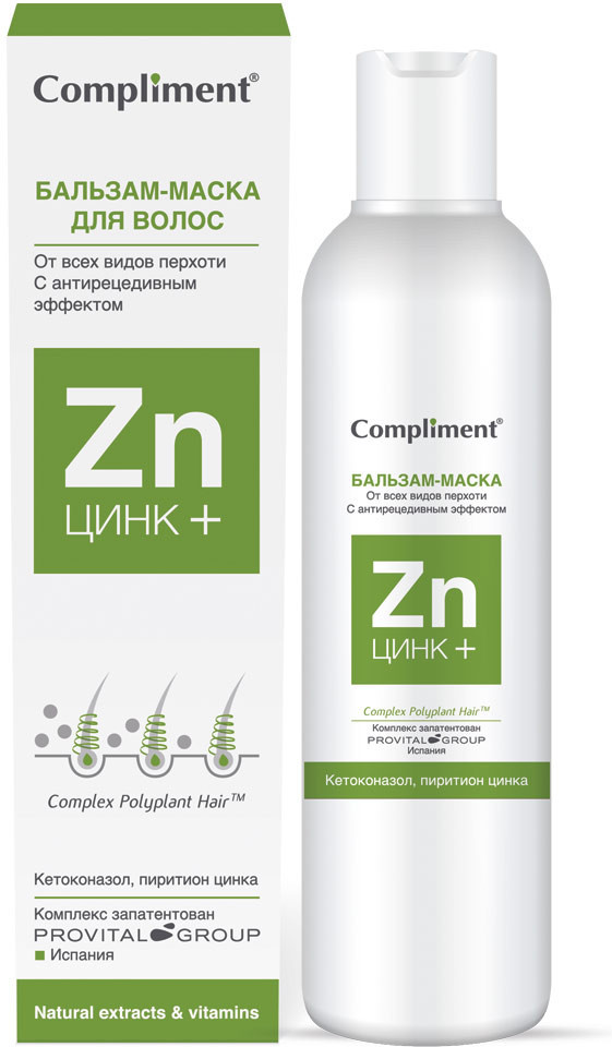 Способ применения: нанести бальзам на влажные чистые волосы по всей длине и кожу головы, равномерно распределить массирующими движениями, через 3-5 минут смыть водой. Подходит для ежедневного применения. Видимый эффект воздействия бальзама-маски заметен уже после первого применения. При регулярном использовании средство предупреждает повторное появление перхоти и улучшает состояние чувствительной кожи. Максимальный результат достигается только при комплексном использовании средств: Бальзам-Маска совместно с шампунем серии «Цинк+» от Complimet и активный несмываемый комплекс двойного действия в ампулах этой же серии (рекомендуется наносить на корни волос в течение 8 дней — 1 курс применения).