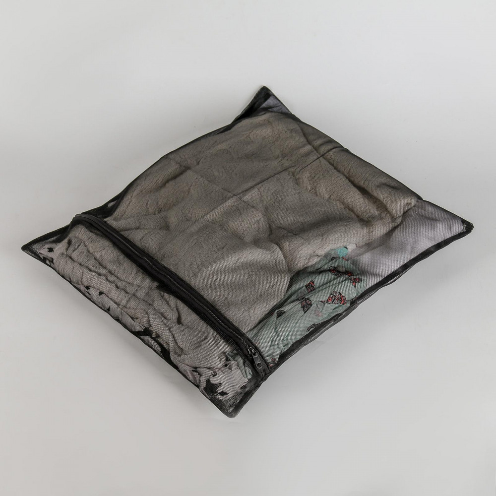 Мешок небольшой, мне размер подходит, туда поместится один тонкий вязаный свитер, или пара тонких кофточек и т.д. Качество хорошее, не расстегнулся при стирке, быстро сохнет. Рекомендую к покупке.