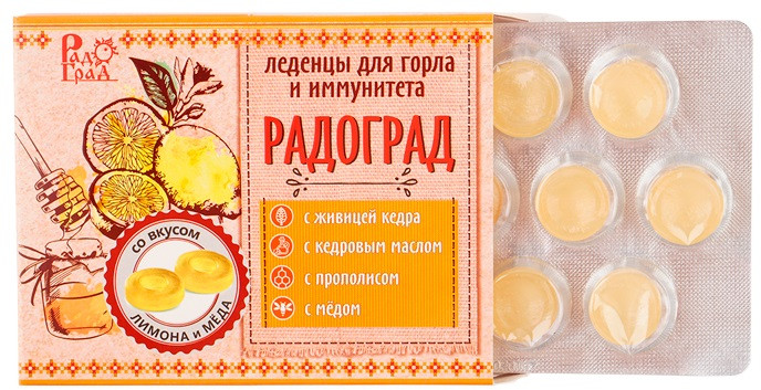 Радоград Леденцы на сахаре с прополисом со вкусом лимона и мёда