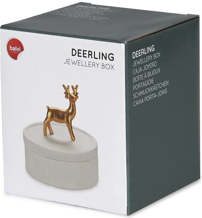 Каждой женщине приходится думать о хранении украшений и бижутерии. Если хочется подобрать удобное и при этом стильное решение, тогда стоит обратить внимание на шкатулку для украшений Deerling от испанского бренда Balvi. Круглая керамическая шкатулка диаметром 10 см выполнена в классическом белом цвете и снабжена съемной крышкой с золотистой фигуркой забавного оленёнка. Шкатулка Deerling придется к месту не только на туалетном столике, но и в спальне или ванной комнате, ведь помимо своего прямого назначения – хранения украшений – аксессуар является отличным предметом декора.