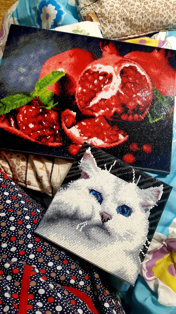 Я в восторге! Холст прочно натянут на подрамник. Есть даже навеска в комплекте. Инструкция на русском языке. Все сложено в красивую коробку. Для подарка просто идеально. Стразы квадратные. Схема на цветном рисунке. Рекомендую!