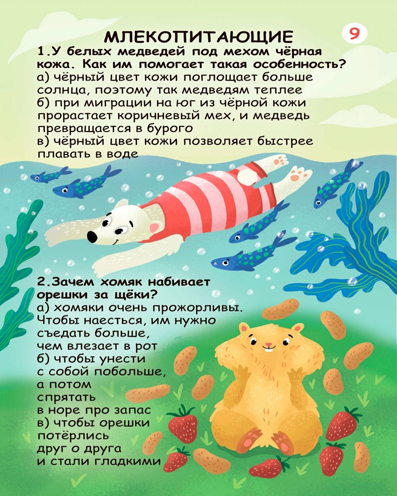 ребенку (7 лет) понравилось, но больше подходит для игры и обсуждения со взрослыми, чем самостоятельных занятий. Много интересных и занимательных фактов о животных, вопросы построены так, что над ними надо рассуждать, чтобы прийти к правильному ответу