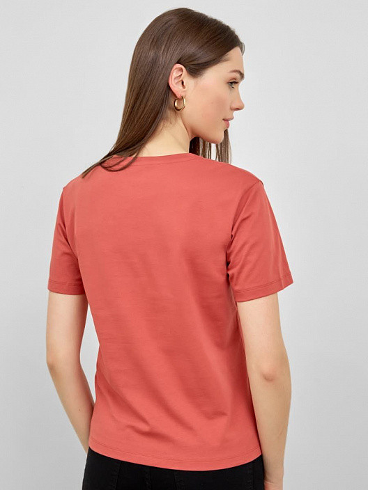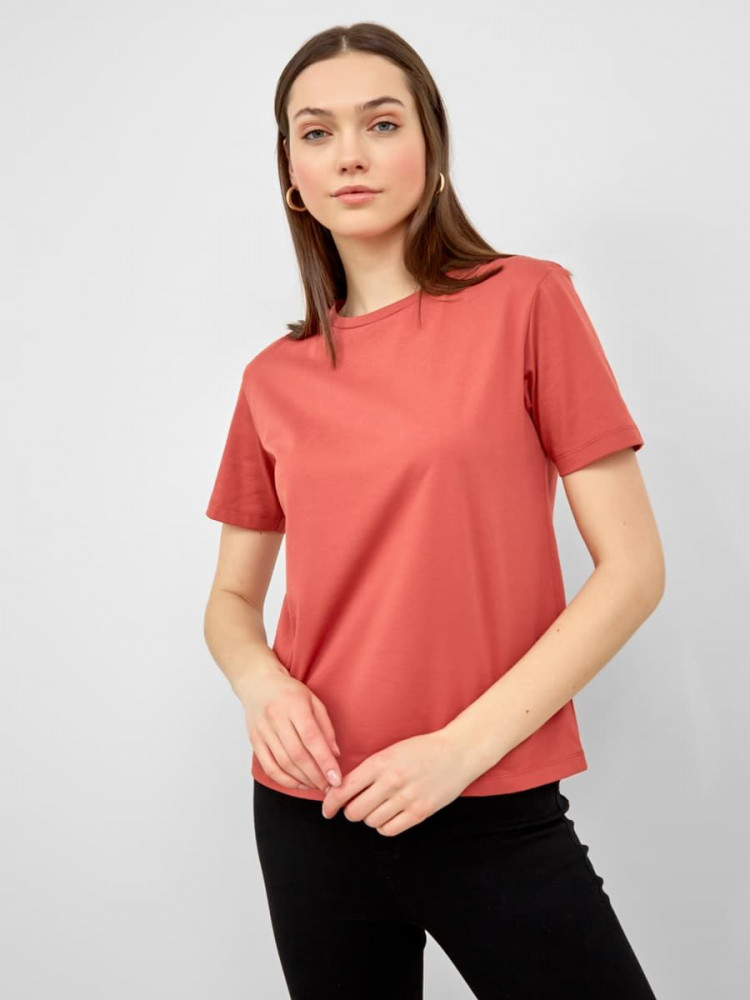 Очень качественный трикотаж и пошив, х/б. Цвет, как на фото, очень понравилась. По размеру - большемерит на 2 размера примерно, на ОБ 104 и ОГ 96 хорошо подошел 44 размер, не в обтяжку.