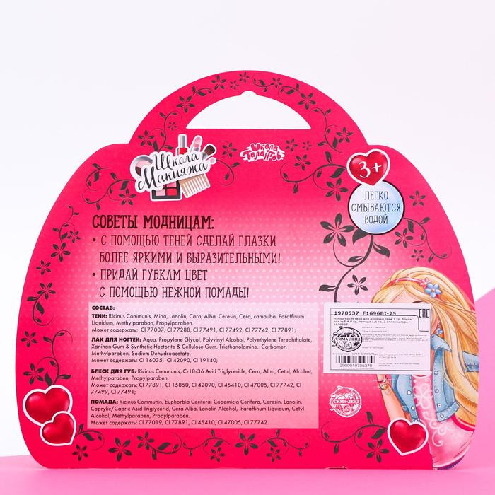 Школа талантов Набор косметики для девочекВ данный момент этот товар отсутствует в продаже. Возможно, у нас найдется аналогичный или похожий товар здесь. Серия: Школа макияжа Детская косметика «Школа макияжа» позволит ребёнку устраивать эксперименты со своим стилем. Набор поможет девочке подобрать оптимальные варианты для вечерних и дневных образов. Косметика без труда смывается водой или с помощью ватного диска и безопасна для детской кожи. |
