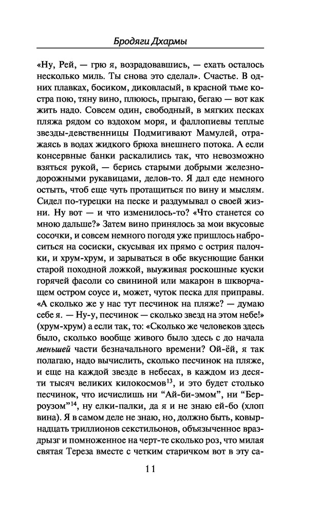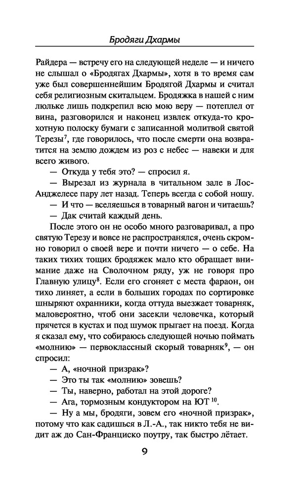 Роман Джека Керуака в 1958 году снес все барьеры и провел читателя от свингующих баров Сан-Франциско до заснеженных пиков Сьерры. Всё новые поколения читателей находят в нем и сексуальные оргии — задолго до «лета любви», и свободные джазовые импровизации — еще до появления рок-музыки, и поэтические «любовные забастовки», и марафоны пьянства, которым предаются молодые люди, подсевшие на чувственность и стремящиеся «улететь». Бродяги Дхармы.