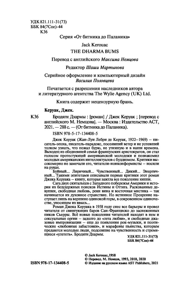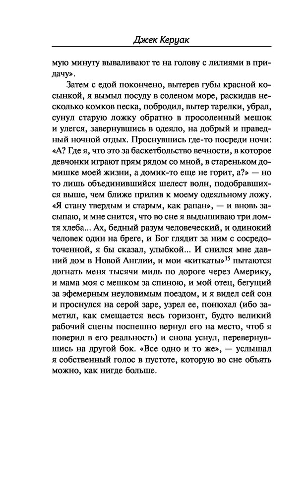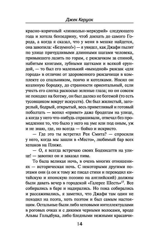 Джек Керуак (Жан-Луи Лебри де Керуак, 1922–1969) — писатель-эпоха, писатель-парадокс, посеявший ветер и не успевший толком узнать, что пожал бурю, не утихшую и в наши времена. Выходец из обедневшей семьи французских аристократов, он стал голосом протестующей американской молодежи и познакомил молодых американских интеллектуалов с буддизмом. Критики высокомерно не замечали его, читатели-нонконформисты — носили на руках.