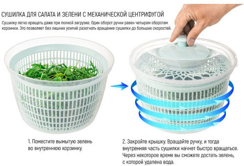 Давно искала подобную сушилку для зелени по просьбе дочери. И нашла на Flip.kz! )))...Чему очень рада! И дочь моя довольна. То, что надо! Для семьи, где употребляют зелень в больших количествах, всегда проблема, как сохранить и помыть зелень, чтобы не терять её свежий внешний вид и вкусовые качества... Теперь эта проблема решена. Спасибо дорогому Flip.kz!