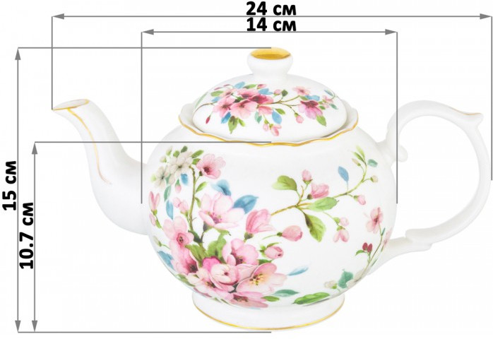 Чайник имеет изящную форму и удобную ручку. Носик не проливает мимо и имеет фильтрующие отверстия против чаинок. Крышка чайника держится с помощью язычка. Чайник с золотым окаймлением нельзя использовать в микроволновой печи или посудомоечной машине. Поставляется в подарочной упаковке. Чайник из серии посуды «Яблоневый цвет на белом» сможет стать настоящим украшением кухни или приятным подарком для ваших родных и близких!