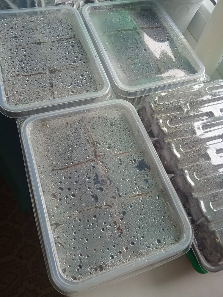 Использовала для посадки в коробки пластиковые (прозрачные), сначала поливала, потом садила семена поверхностно, накрывала крышкой и раз в день опрыскивали. Так вот, почему то половина горшочков заплесневели, причем сильно так. Снаружи белой коркой покрылись, сверху весь грунт будто паутиной обрастал. Не знаю, в чем причина. По сути, рядом росли те же семена в таких же условиях, но в торфяных таблетках, и с ними все хорошо, а стаканчики почти все в плесени. Не испортились только те, в которых семена взошли уже на второй день, и я убрала с них пленку. Все, что были под крышками/целлофанами - завонялись :(