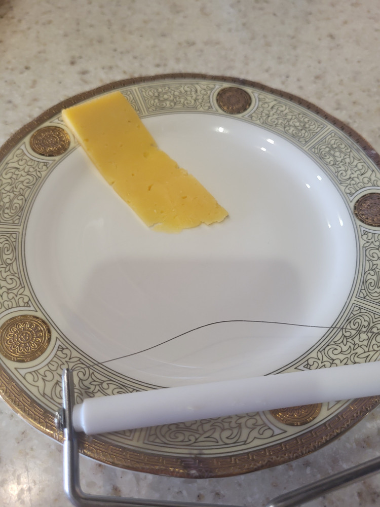 Нарезать сыр с первого раза не получилось. Возможно сыр был недостаточно твердый. Но потом приспособились. Удобно. Ломтики равномерно тонкие. Дети с удовольствием используют.