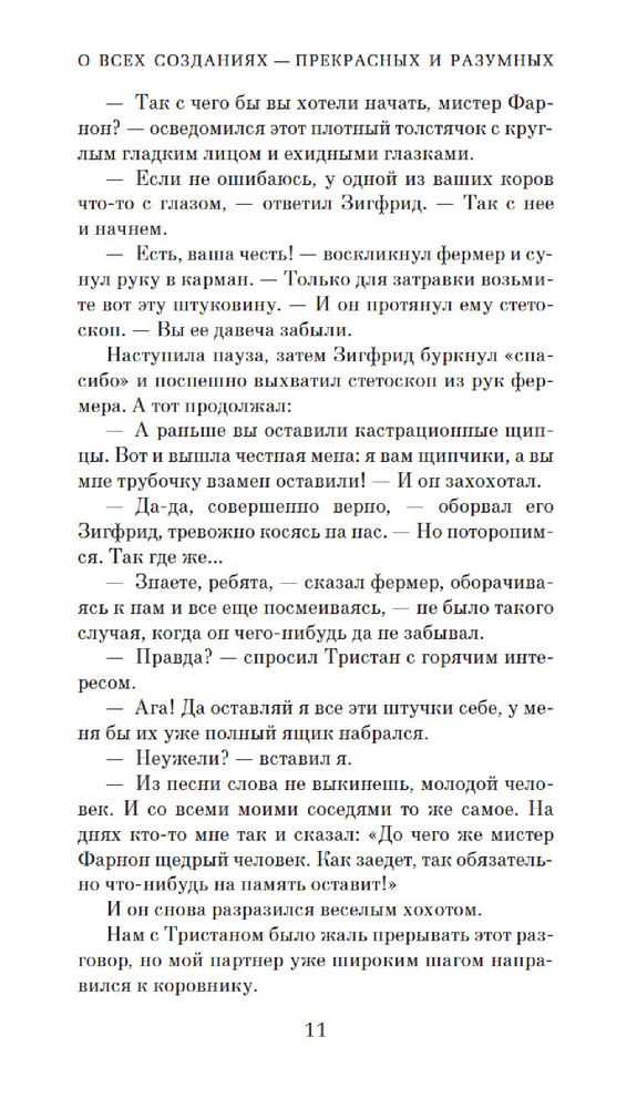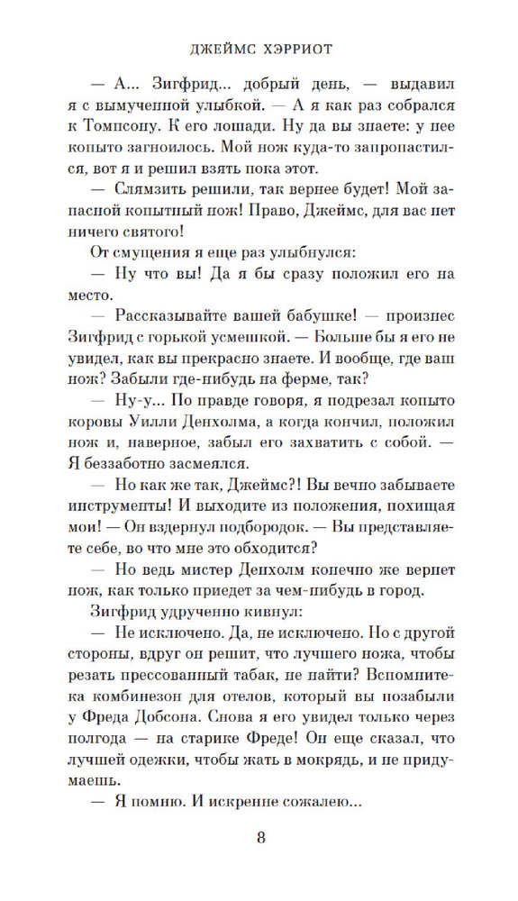 Блестящий тонкий юмор автора этих произведений "заставляет" читать эти книги вновь и вновь!!! ВИВАТ Джеймсу Хэрриоту!!! Советуем всем для семейного чтения.